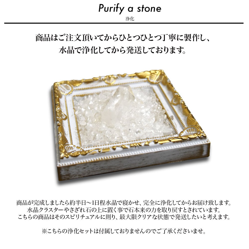 発送前に水晶で約半日から1日寝かせ、完全浄化してから発送しております。