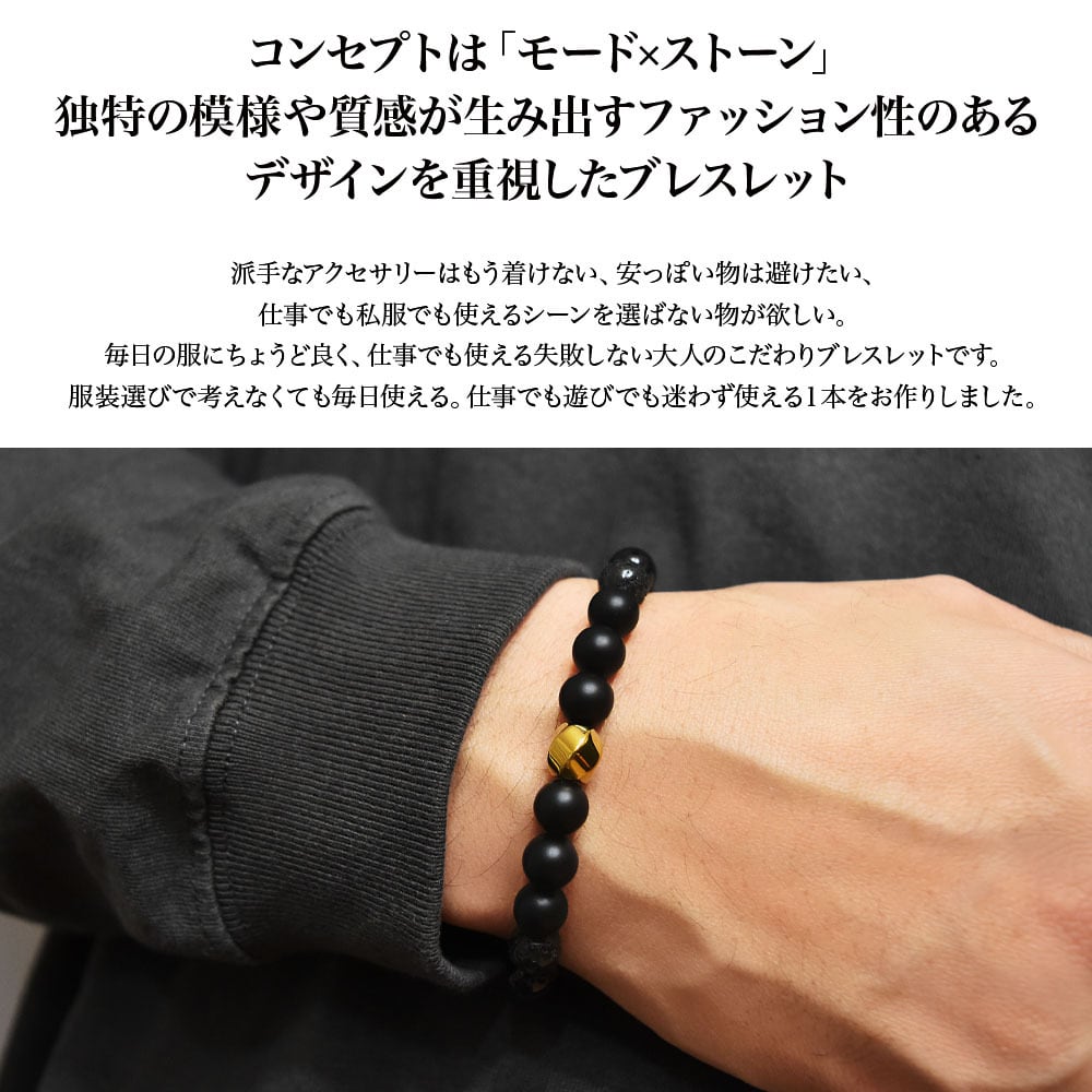 【高品質天然石】Onyx×Lava×GoldHematite Stone Bracelet【品番 26S2002g】