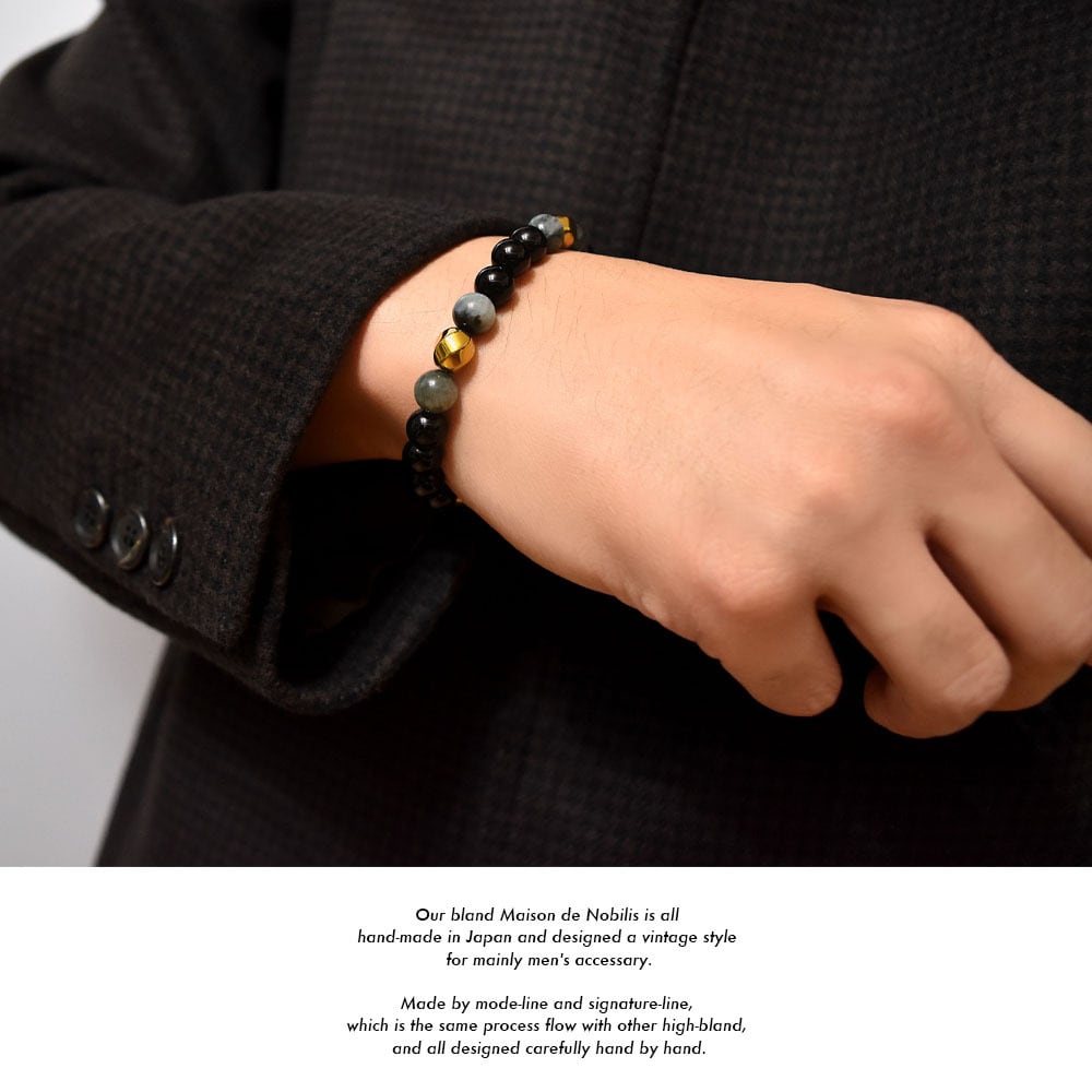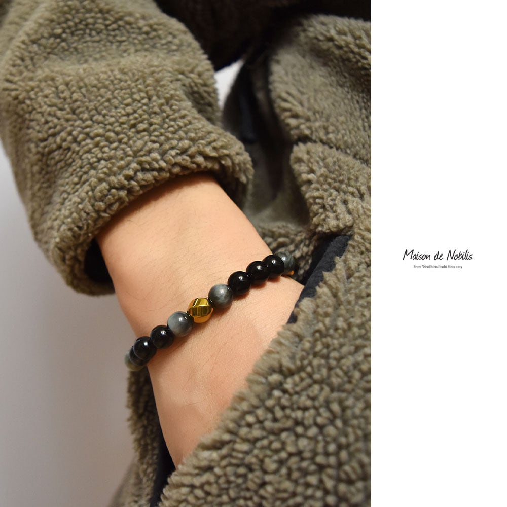【高品質天然石】Eagle Eye×Onyx×Gold Hematite Stone Bracelet【品番 26S2009】
