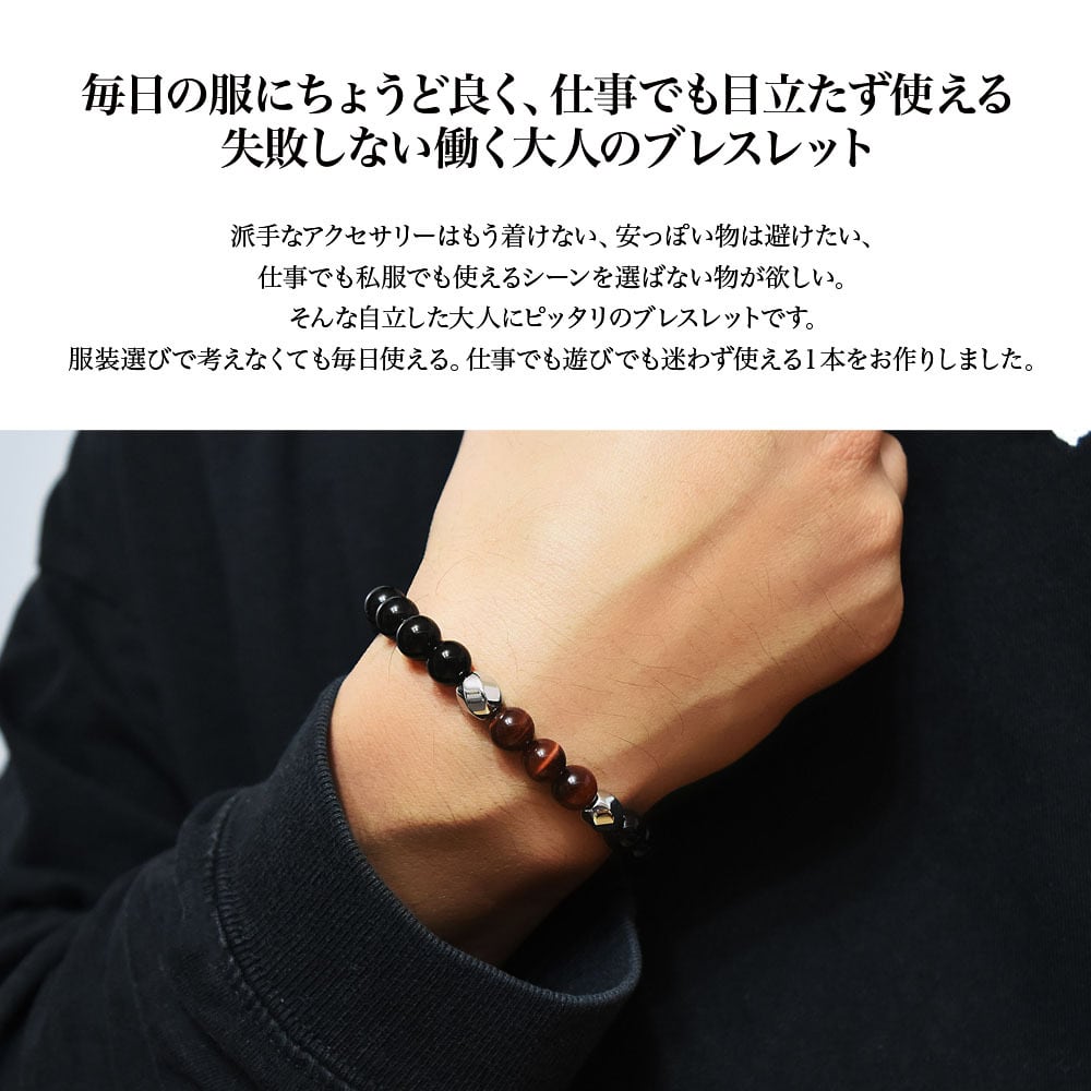 【高品質天然石】Red Tiger's Eye×Onyx×Silver Hematite Stone Bracelet【品番 26S2001r】
