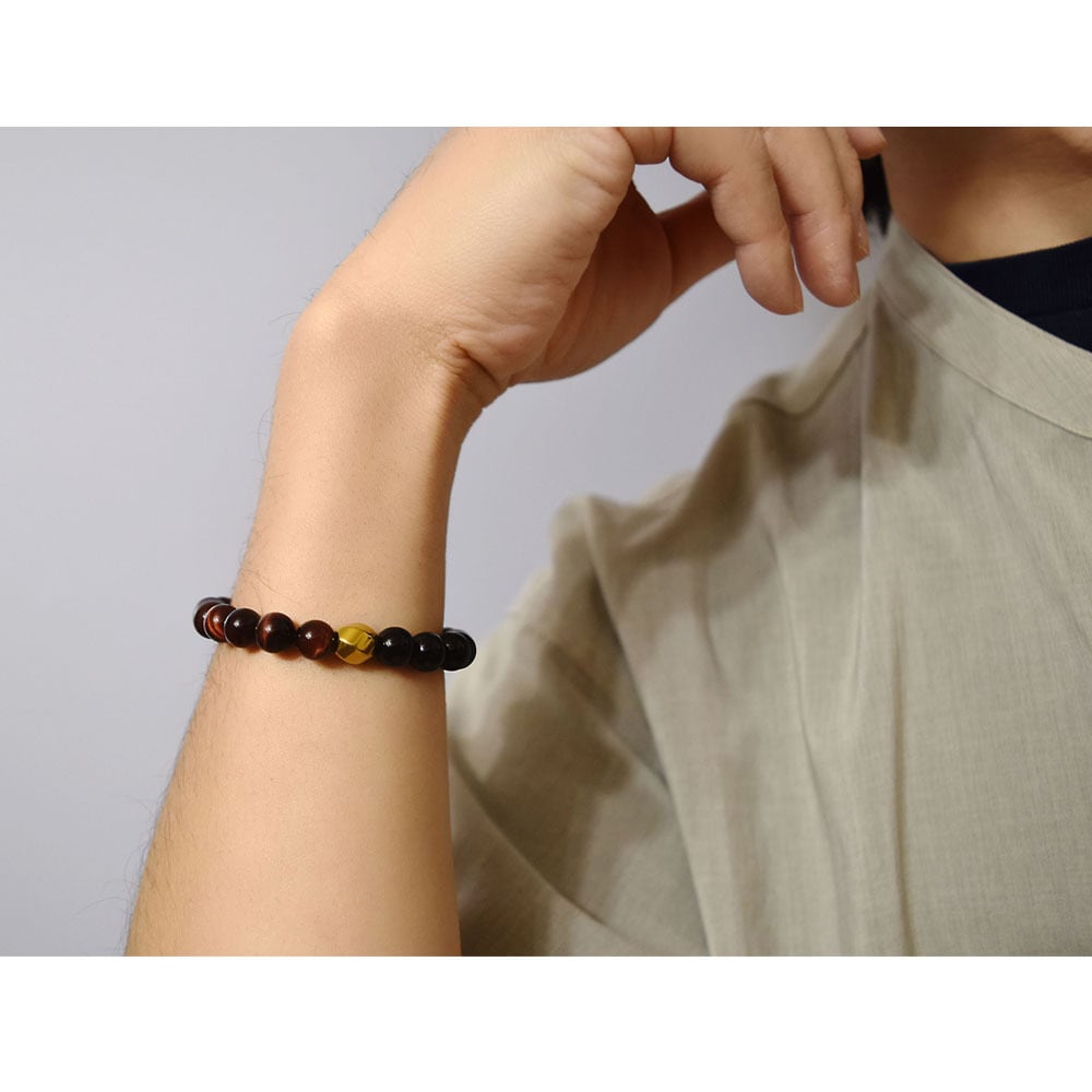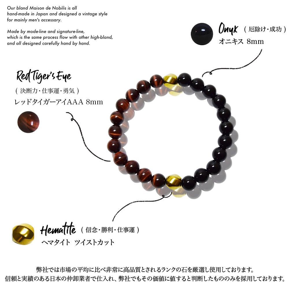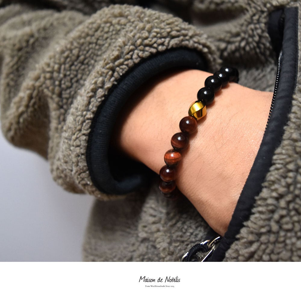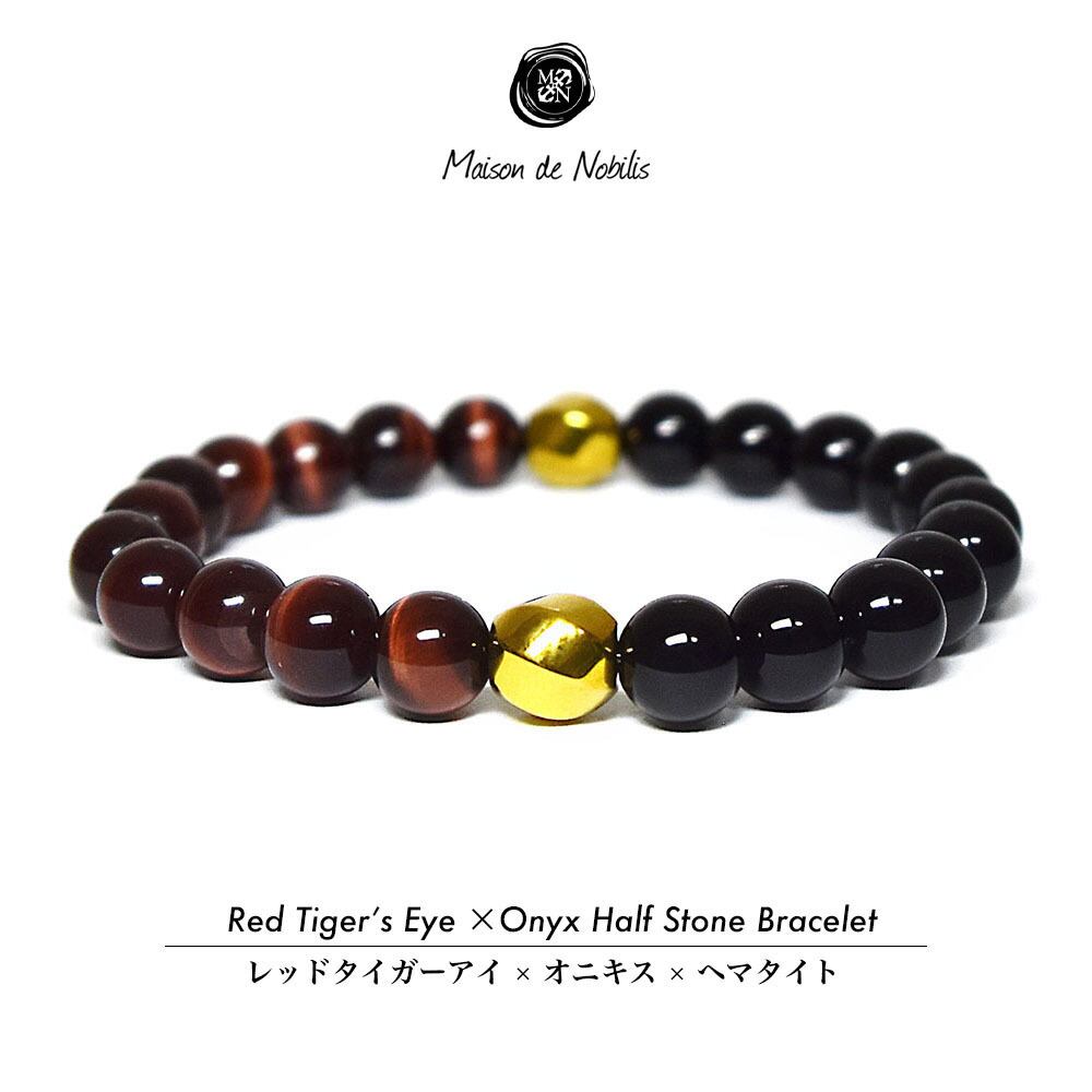 【高品質タイガーアイ】Red Tigers Eye×Onyx×GoldHematite Half Stone Bracelet【品番 26S2010】