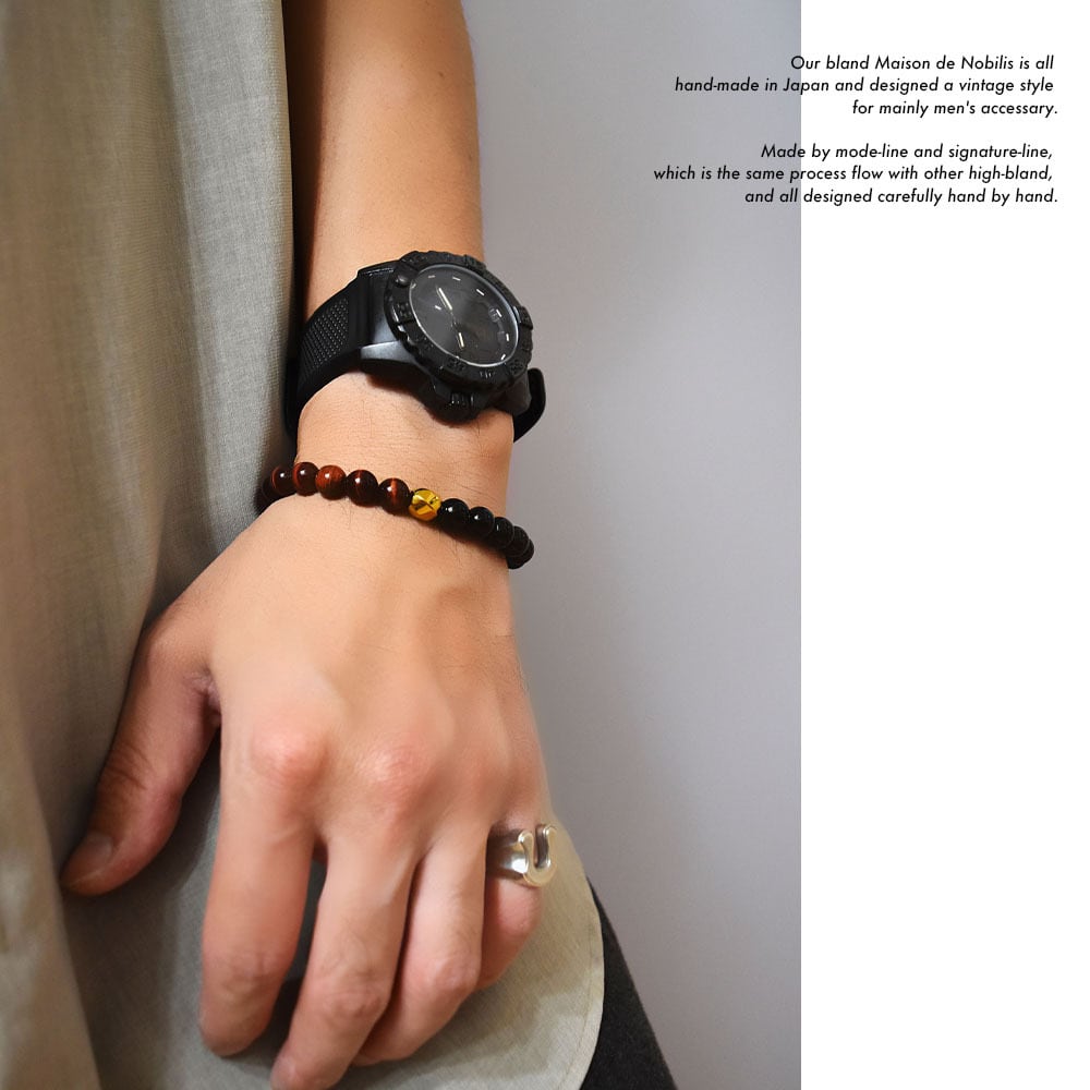 数ある黒系天然石から厳選し、初めてストーンブレスレットを持つ方にも使いやすい種類を組み合わせたクセのないブレスレットです。