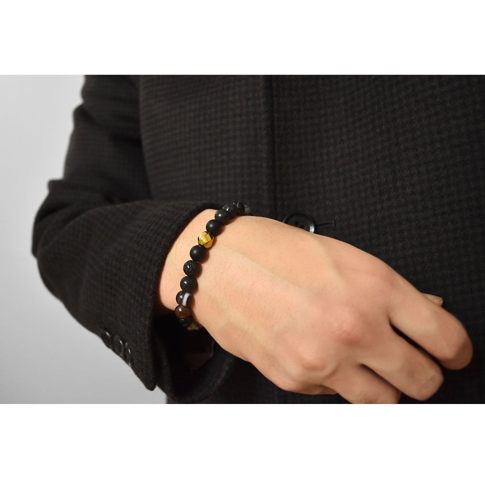 数ある黒系天然石から厳選し、初めてストーンブレスレットを持つ方にも使いやすい種類を組み合わせたクセのないブレスレットです。