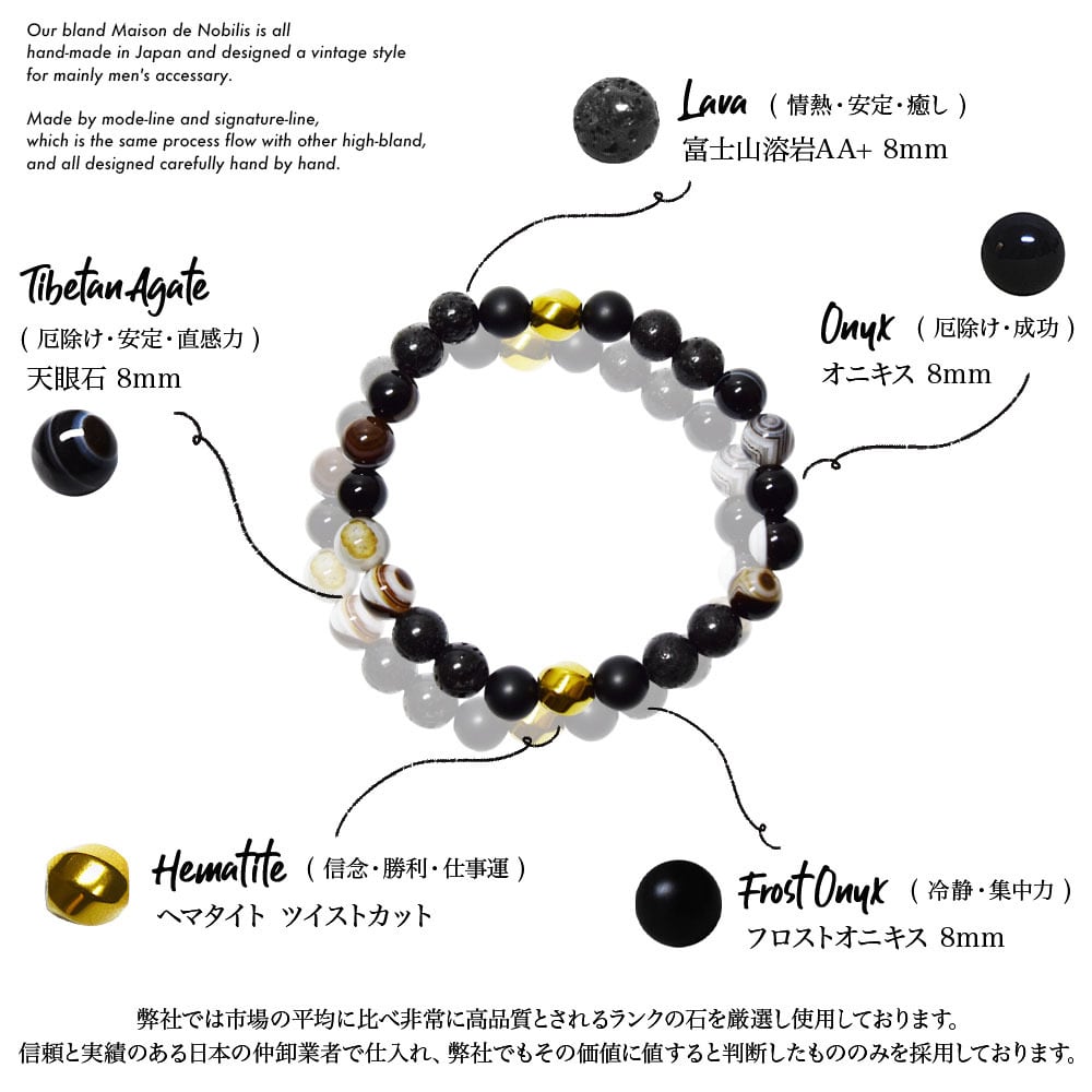 【高品質 天眼石】Tibetan Agate×Onyx×Lava×GoldHematite Stone Bracelet【品番 26S2007】