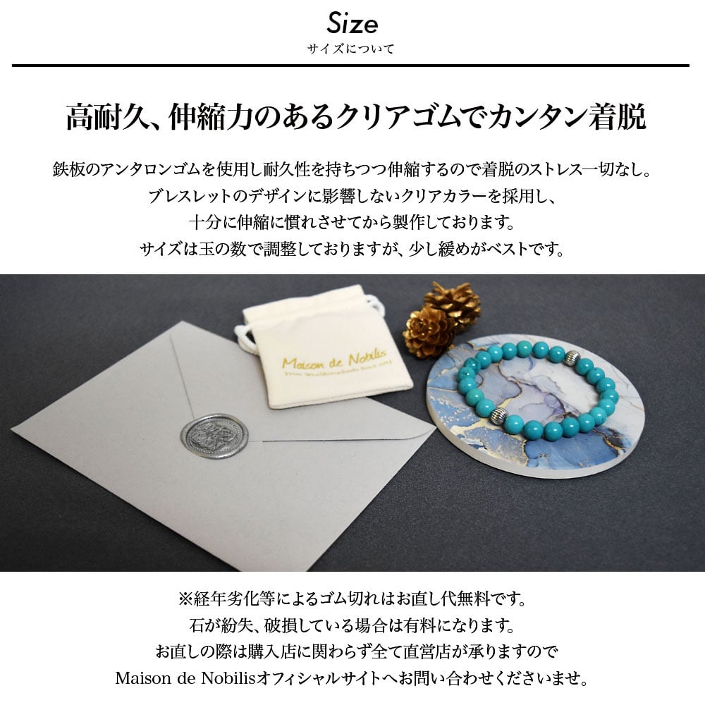 ※ゴムがちぎれたりした場合のアフターケアも行っております。その際は一度お問い合わせくださいませ。(石を破損や紛失した場合は個数に応じて料金がかかります。)