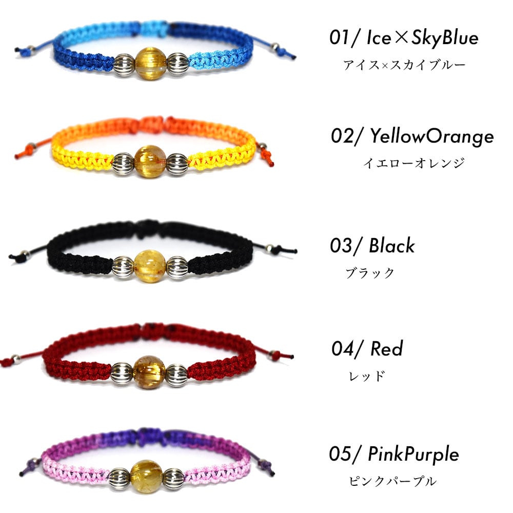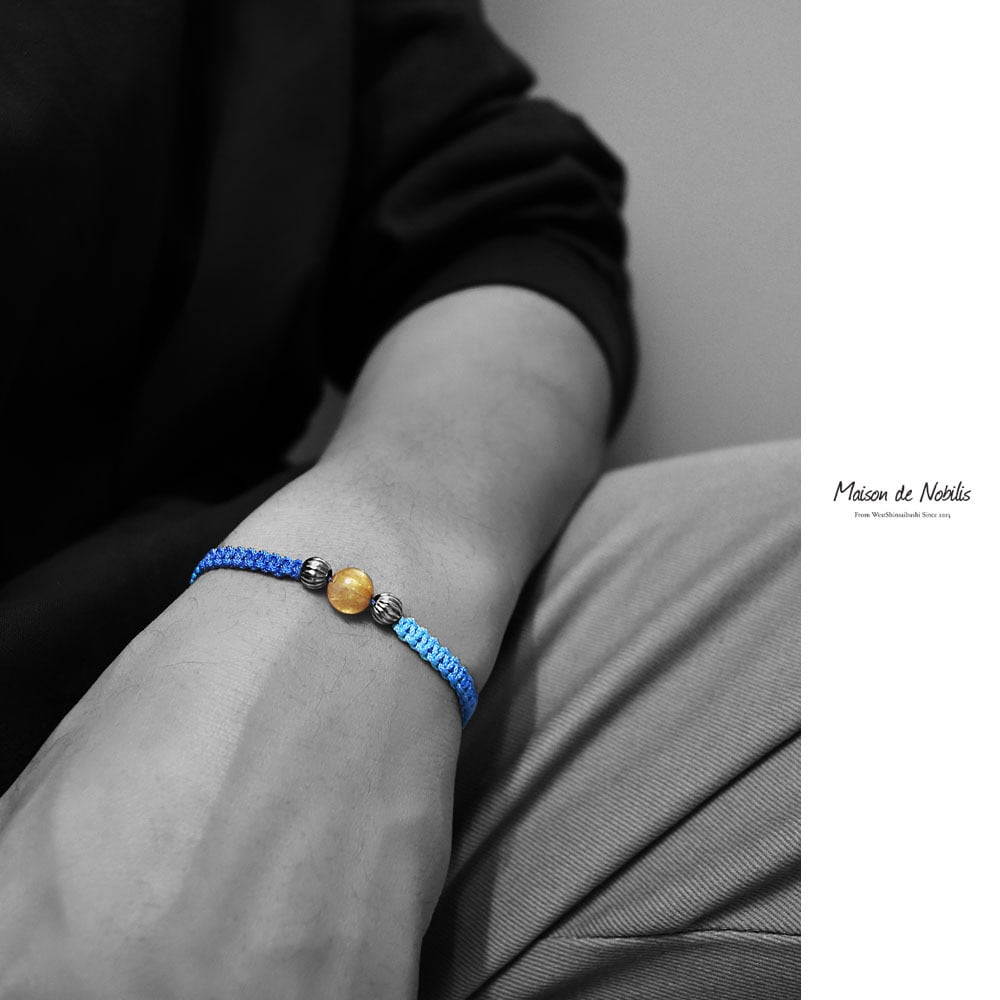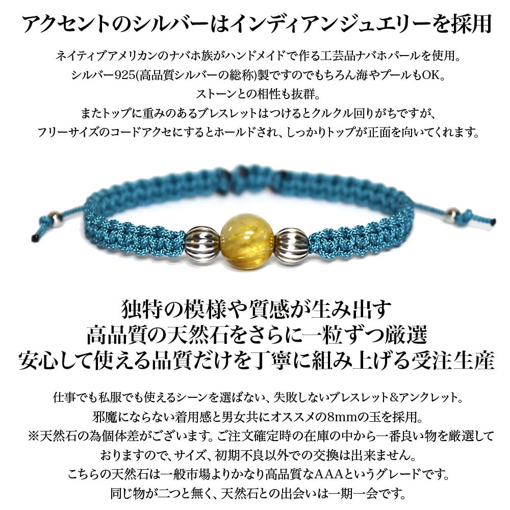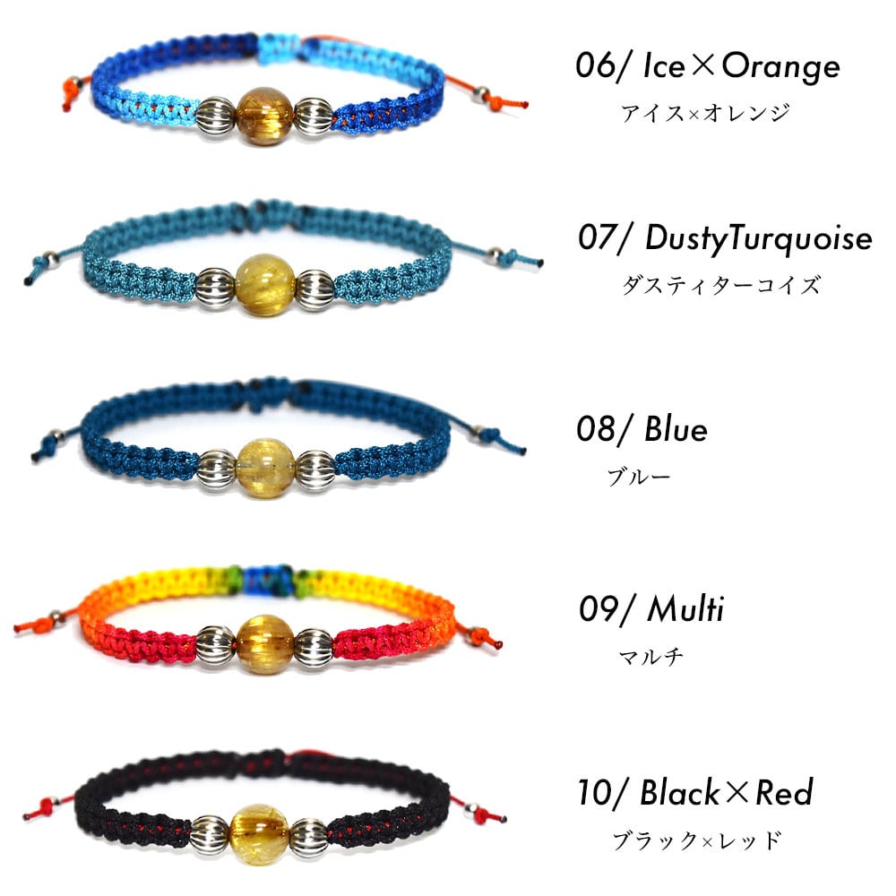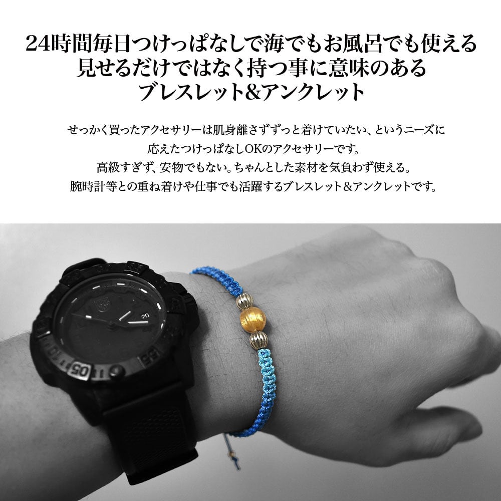 ルチルクォーツをベースにネイティブアメリカンのナバホ族がハンドメイドで作るシルバービーズ、ナバホパールをアクセントに、Maison de Nobilisが得意とするカラーバリエーション豊富な編み込みコードアクセサリーに昇華し24時間着用可能なブレスレット、アンクレットに仕上げました。