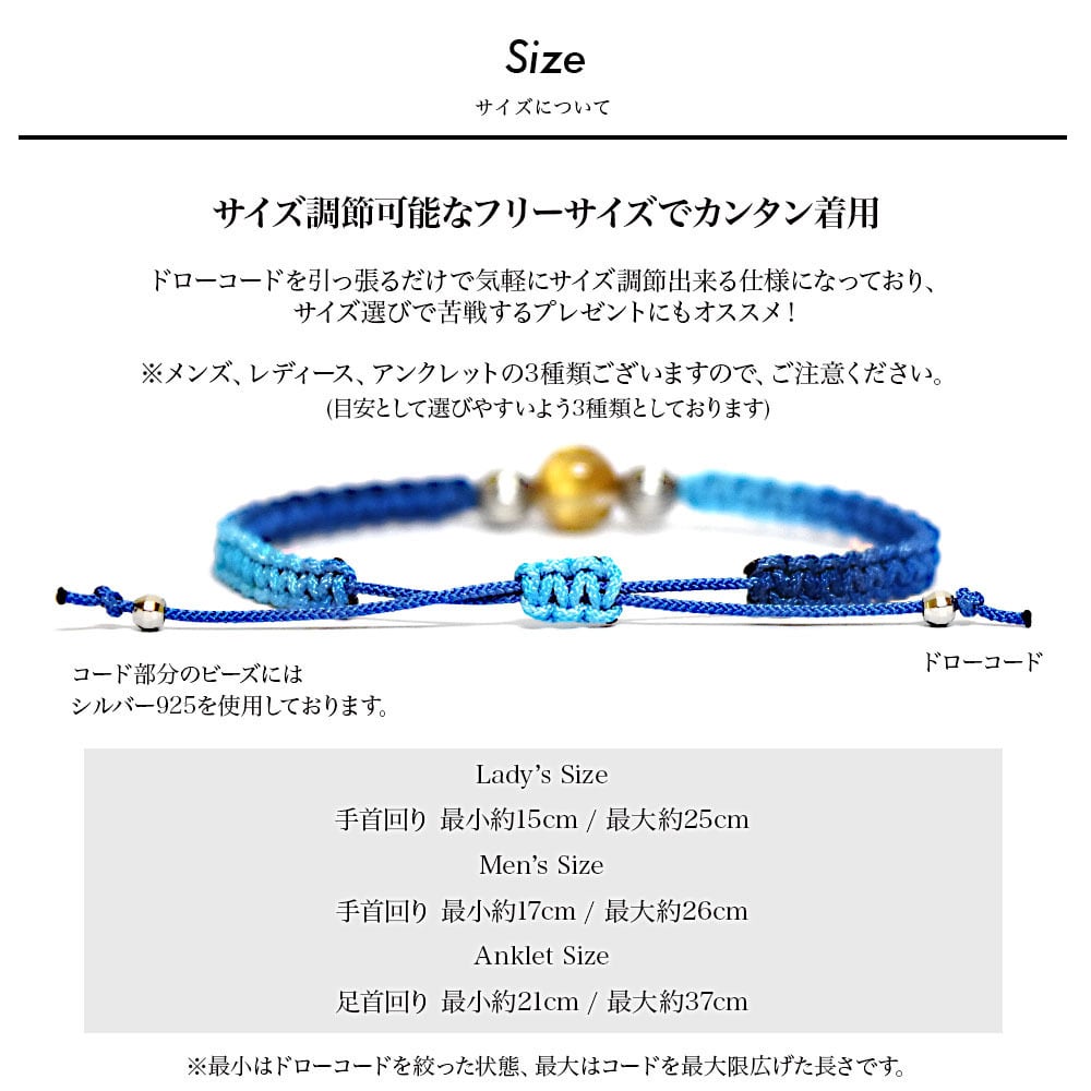 サイズはフリーでレディースブレスレットサイズ、メンズブレスレットサイズ、アンクレットサイズの3種類ございます。
