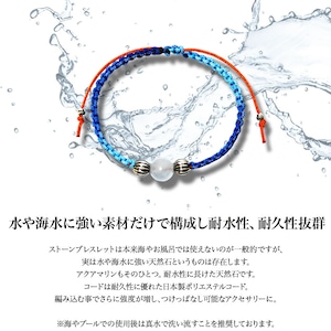 基本的にストーンブレスレットは海やお風呂での着用はできませんが、水や海水に強い天然石というのも存在します。アクアマリンもそのひとつ。見せるだけでなく持つ事に意味があるのでプレゼントやペアでの着用にもオススメ。