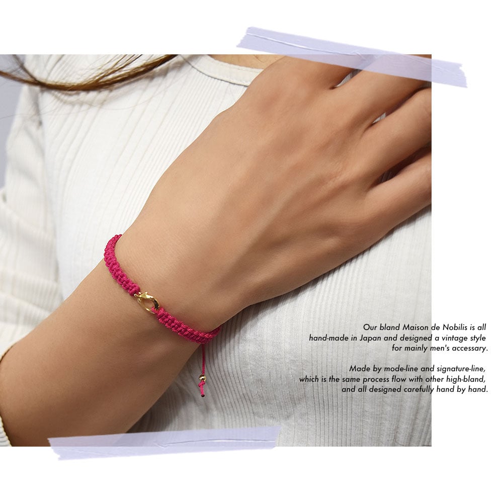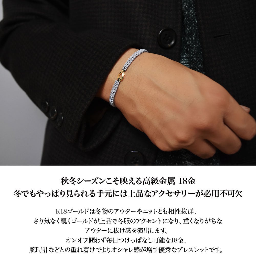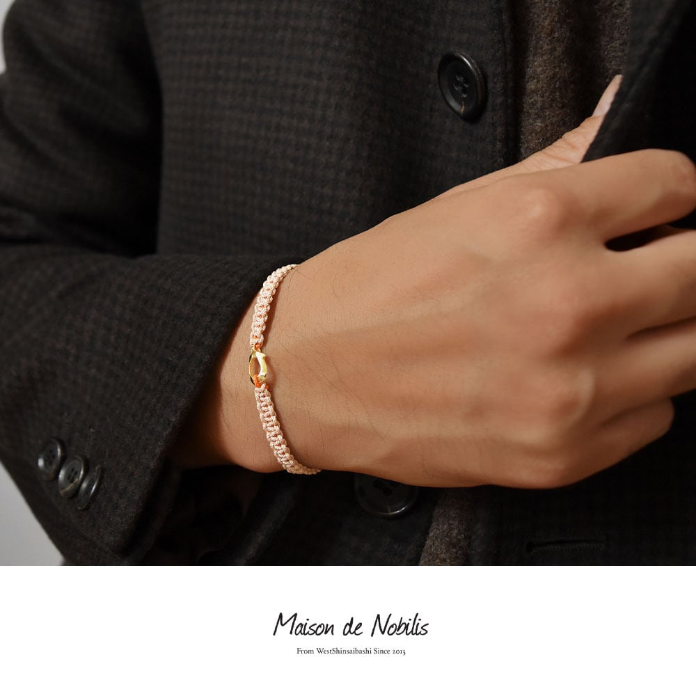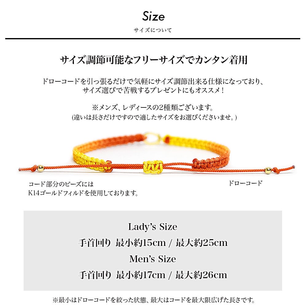 ※【納期につきまして】 こちらの商品はご注文の確認より約2〜3営業日程で発送致します。 土日祝はお休みですが、発送は行っており、ご注文は随時承っております。 ご了承頂けましたら幸いです。 【お手入れなしで一生輝く高級素材 18金】 18金は純金75%の高級素材。本物志向の大人の為のさり気ないお洒落を演出する一本になります。 経年劣化など、もしコードが切れてもお直し代無料で交換できるので一生使える! 【主張しないのに印象に残る、身に着ける人をセンス良く上品に演出】 清潔感と知的で紳士な印象を与えるホースシューモチーフ。 K18ゴールドで安っぽさゼロ、店頭ではまず見つからない大人の手元にしっくりくる洗練されエッジの効いたシンプルなデザインです。 【プレゼント満足度No.1のホースシューアイテム!】 男女共に幅広い層から支持されるモチーフ。 大人向けモチーフですので30代40代の方には特にオススメです。 男性だけでなくペアでの着用や女性にもピッタリの上品なホースシュー。 専用ケース、ポーチ付きでプレゼントにも好評価を頂いている商品です。 【24時間着用可能で海でもお風呂でも毎日つけっぱなし!】 せっかく買ったブレスレットはずっと着けていたいし、もちろん海やフェスなどのレジャーでも活用したい!という願望を叶える為に開発されたブレスレット。 高級金属のK18ゴールドをチャームに採用し、海やプール、シャワーなど、24時間着けっぱなしでもOKです。 コードは水や汗に強く、耐久性に優れた日本製のポリエステルコードを、職人の手によって全て手作業で編み込み、さらに強度を上げております。 【ご購入後のカラーやサイズの変更も無料!】 気分や季節に合わせてカラーの変更や、夏はアンクレット(同じチャームを使用しているK18Gold Horse Shoe Anklet)、冬はブレスレットに変更という使い方も可能に!カラーは引き継ぐ事も可能! 小さめのゴールドチャームですので安っぽくならず、サラッと着けてさりげなく手元を主張できます。酸化による変色もないのでいつまでもキレイな美しい状態で着用して頂ける高品質アクセサリー。 蹄鉄とも呼ばれる馬蹄はヨーロッパでは幸運のモチーフとして玄関先に飾られているだけでなく、日本でも「ウマくいく」として必勝祈願や、馬の蹄鉄を「滑らない」として合格祈願としても人気のモチーフです。 大きな試験を受けられる方への応援アイテムとしてのプレゼントにもオススメ! フリーサイズ展開ですのでサイズ選びで苦戦するプレゼントにもオススメ。 直営目玉商品として価格もリーズナブルに抑えた、メゾン ド ノービリスが自信を持ってオススメする人気商品です。 ◆素材 / チャーム部分 K18ゴールド/コード部分 ポリエステル100% / ビーズ部分 K14GFD ◆太さ / 5mm (0.8mm日本製コードを使用) ◆製作国 / 日本 ◆付属 / ギャランティーカード(保証書)/アクセサリーポーチ ※ご注文のキャンセルはお受け出来ませんのでご注意ください。交換は随時承っておりますので、ご連絡くださいませ。 ※コードがちぎれたり、チャームの磨き等アフターサービスも承っておりますので、その際は一度お問い合わせくださいませ。 ※フリーサイズですが、メンズとレディースで若干サイズが異なります。ご注意ください。